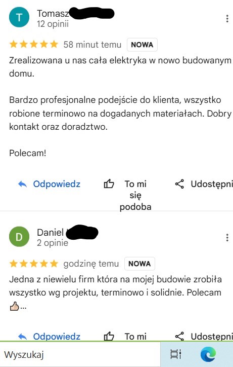 Od 6 lat wykonuję instalacje elektryczne w nowych domach oraz naprawiam usterki. Wykonałem instalację w ponad 30 nowych domach.